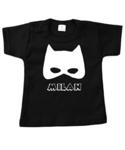 Het shirt met naam en masker van een Superheld is superstoer toch? Verkrijgbaar in diverse kleuren en maten.