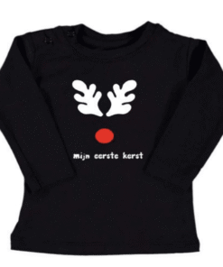 Baby shirt Mijn eerste kerst is een erg leuk shirtje voor de eerste kerst van jouw kleintje, erg leuk om te bewaren als herinnering. Je hebt de keuze uit 2 designs: Rudolf het rendier met rode neus of een kerstboom.