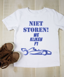 Het shirt is van katoen en verkrijgbaar in diverse maten. Bestel ook de leuke babysokjes F1 mee.