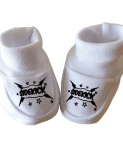 Babyslofjes Sidekick voor kleine pasgeboren superhelden, zijn lekker zacht en warm voor de babyvoetjes. De slofjes zijn gemaakt van zacht katoen en worden bedrukt in een kleur naar wens. Ze zijn geschikt voor 0 t/m 3 maand oude baby’s.