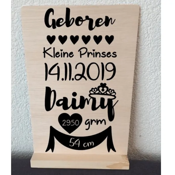 Houten geboorte poster kleine prinses