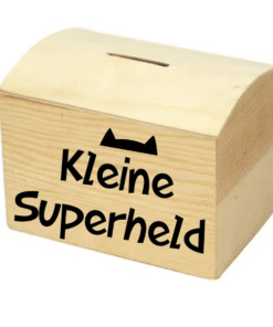 Deze mooie houten box is een prachtig kraam cadeau voor een pasgeboren kleine superheld. Je vult het kraam cadeau met de romper, slab en het mutsje. Ook hebben we een bijpassende spaarpot bijgevoegd.