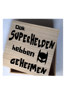 - Houten doos Ook Superhelden hebben geheimen evt. met naam