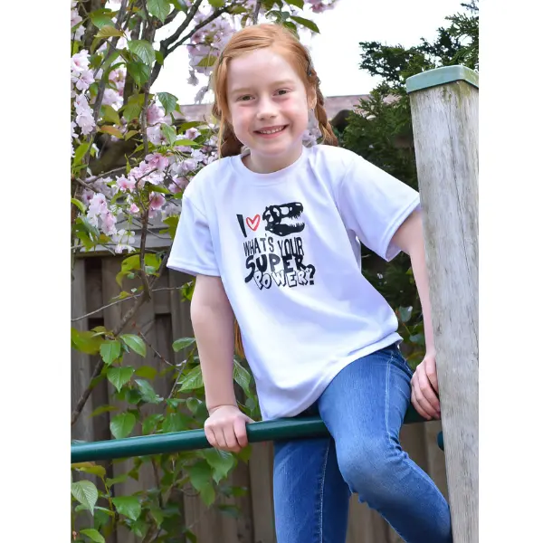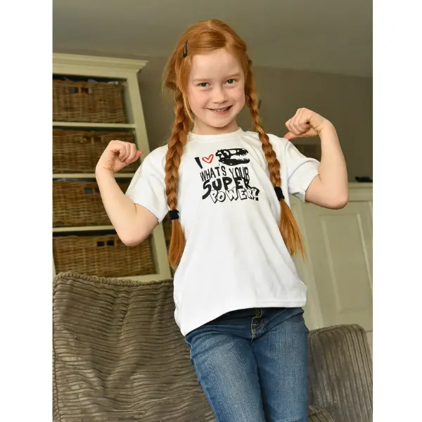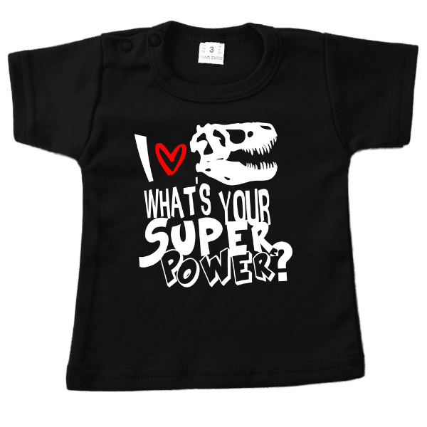 - kinder tshirt Dino skelet -i love dinosaurs what’s your superpower