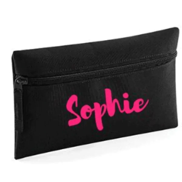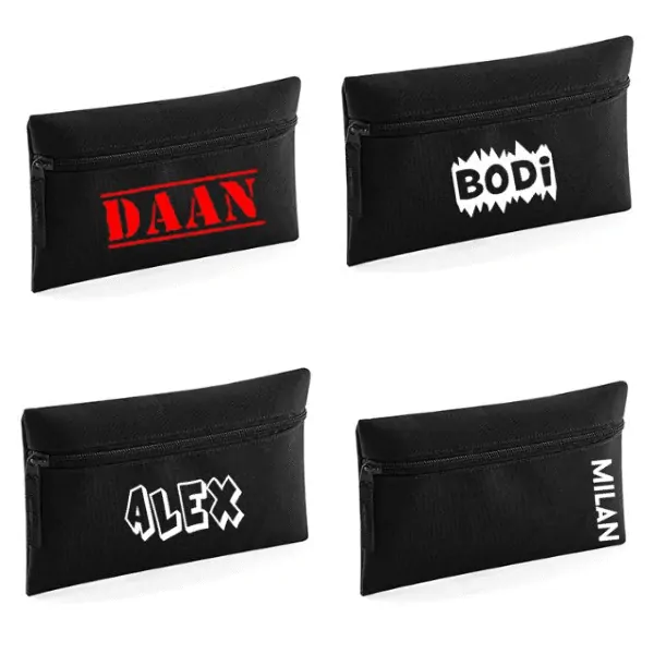 Hoe cool is deze school etui met naam? Je hebt de keuze uit diverse lettertypes en kleuren bedrukking.