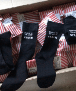 Wil je een origineel en persoonlijk cadeau geven? Met deze sokken met eigen tekst maak je een uniek paar sokken dat helemaal bij jou past. Of je nu kiest voor een grappige quote, een lieve boodschap of een bekende uitspraak – jij bepaalt wat er op de sokken komt te staan.