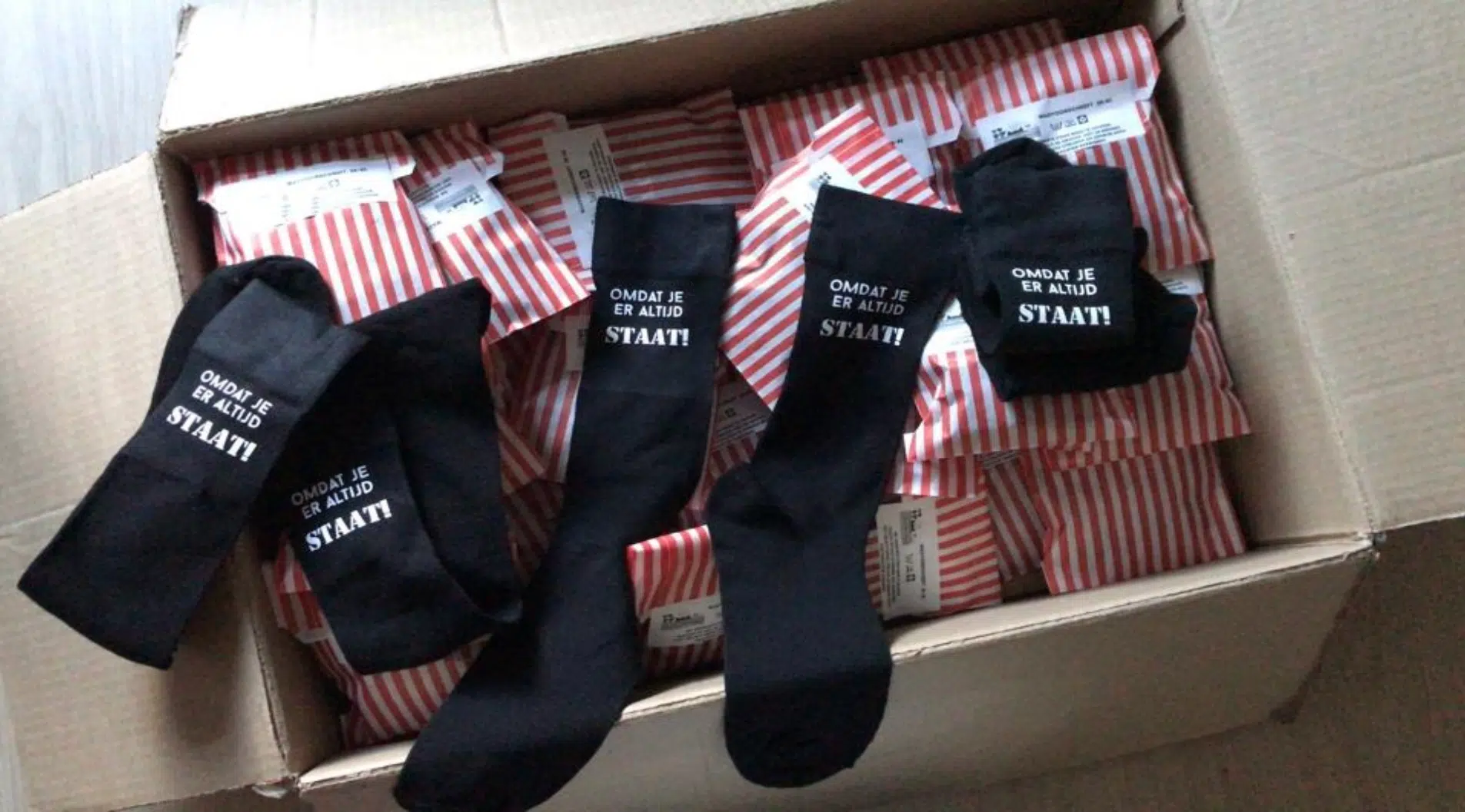 Na het bestellen ontvang je eerst een ontwerp, zodat je kunt bekijken of het lettertype en de stijl naar wens zijn. Zo weet je zeker dat jouw persoonlijke sokken precies worden zoals jij ze wilt.