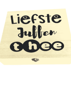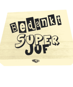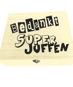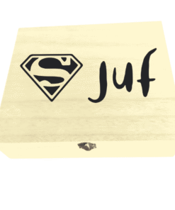 Bedank de liefste Superjuffen met deze mooie grote theedoos met keuze uit diverse teksten zoals Bedankt superjuffen, Juffenthee of , op de voorzijde kan je een tekst/naam/klas laten plaatsen.