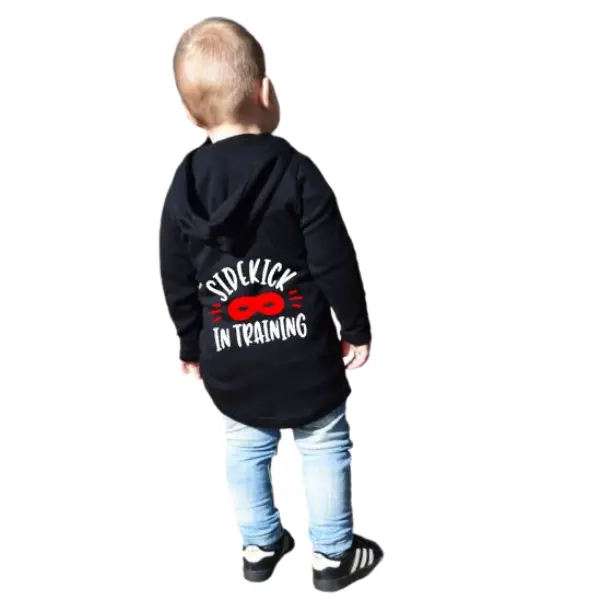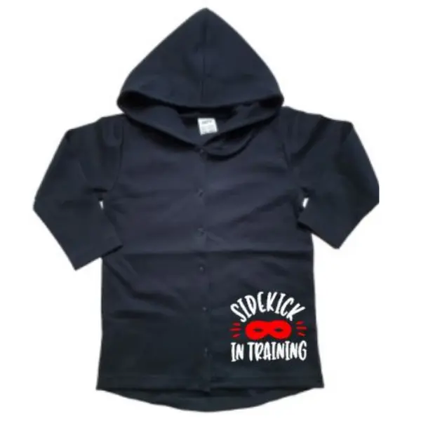 Vesten mogen niet ontbreken in de kledingkast van kleine superhelden. Het vest sidekick in training valt ruim, heeft aan de voorzijde drukknopjes en wordt aan de voor en achterkant bedrukt. Je koopt met dit vest een origineel cadeau voor de Sinterklaas, Kerst of een verjaardag. Tijdens de frissere dagen trekt jou kind het vest over een shirt aan en blijft hij of zij lekker warm. Vest sidekick in training is een grappige verwijzing naar een oudere broer of zus. De vesten zijn er in de maten 80/86 tot en met 134/140.Â