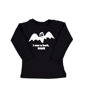 Met een knipoog naar de grote Superheld, is dit shirt met tekst “I am a Bat, man!” natuurlijk supertof!