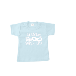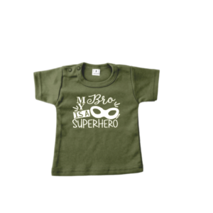 Een stoer shirt voor babybroer of zus. Babyshirt My bro is a superhero is onwijs stoer voor kleine broer, grote broer is natuurlijk een Superheld.