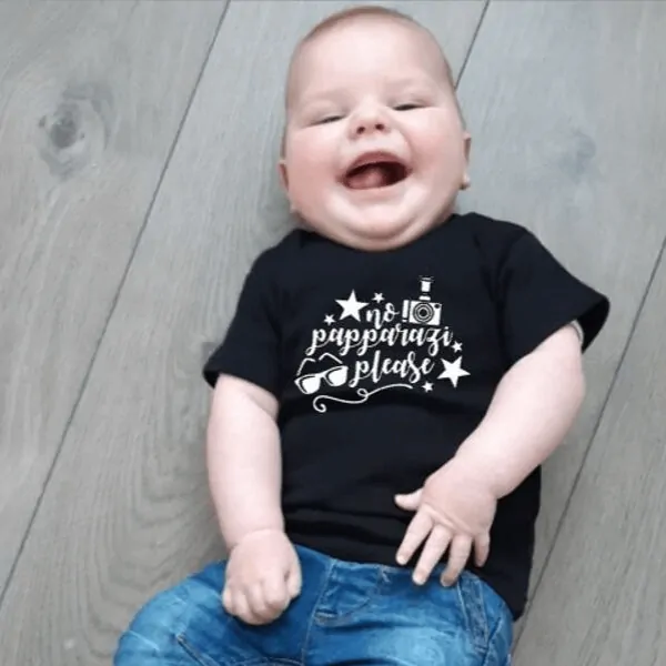 Dit tshirt staat jouw kind geweldig! Sta jij ook altijd klaar met jouw fototoestel om die knapperd vast te leggen? Tshirt No papparazi please staat jouw kleintje superleuk!