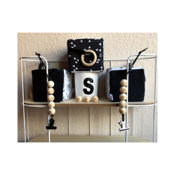 De hanger is ongeveer 25 cm lang en er zit een zwarte of zilverkleurige klem aan.
