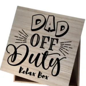 Een kado voor de stoerste papa van de wereld, ook wel genaamd Superpapa! Dad off duty relax box, voor papa die op vaderdag of vaker mag relaxen! De sokken laten het weten aan de kids en doucheschuim om van te genieten.. Wat een geweldig kado is deze houten kist van 21 x 21 cm groot. Wij stoppen de leuke Off Duty sokken én de doucheschuim alvast in de box
