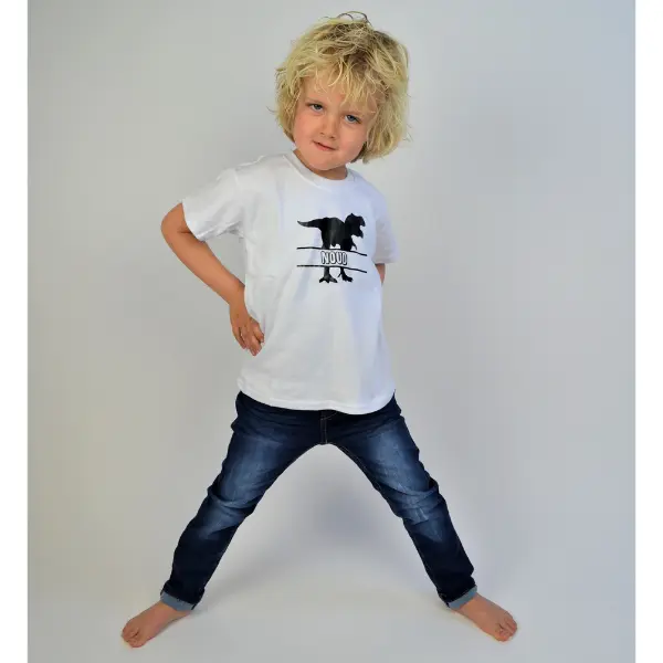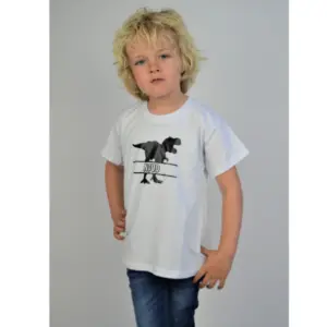 Rawrrrrrrr, er staat een stoere dino op je shirt! Het shirt wordt gepersonaliseerd met naam.