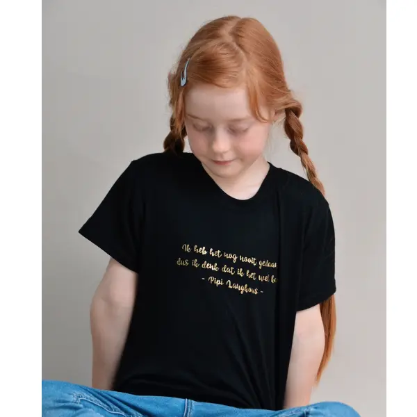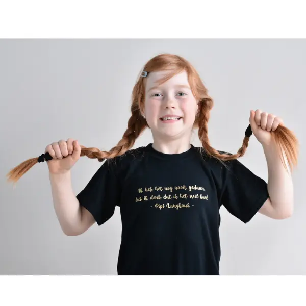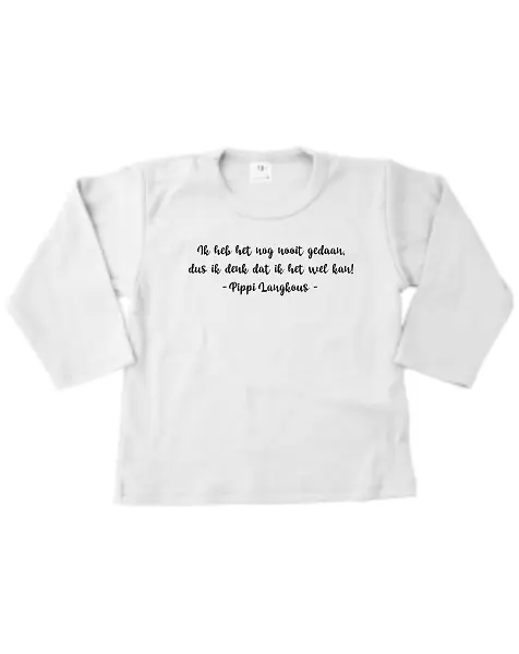 Hoe gaaf is dit shirt! De uitspraak “Ik heb het nog nooit gedaan, dus is denk dat ik het wel kan” is een hele bekende! Van de altijd stoere Pippi! Wij vinden deze quote echt wel passen bij ons superhelden, want van proberen kun je leren!
