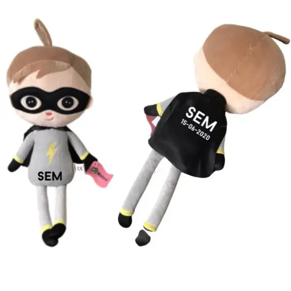 - Keuze naam (en evt. geboortedatum) bedrukken op buik of cape