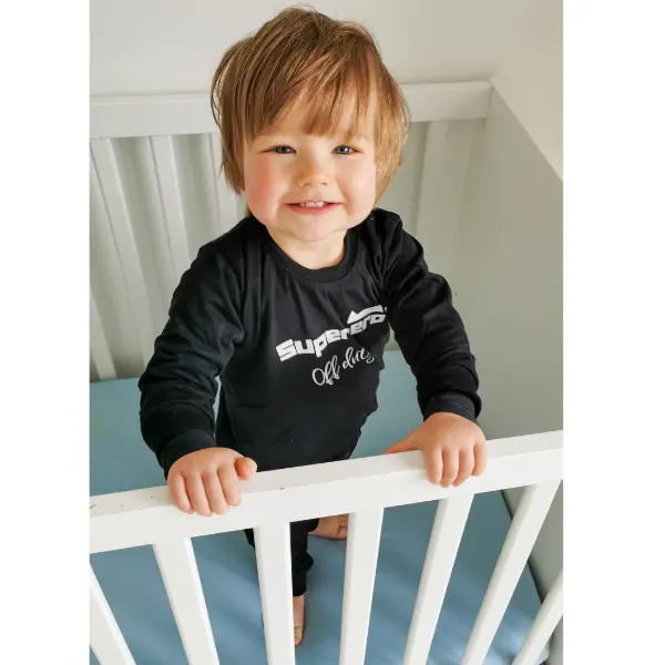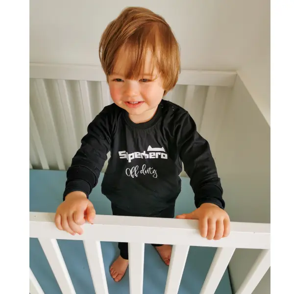 Als jouw kleine superheld een dutje doet, dan is hij even off duty natuurlijk, in deze baby pyjama zal hij heerlijk slapen. Om vervolgens de wereld weer (on)veilig te maken met zijn Superhelden streken! Je geeft met de pyjama superhero off duty een origineel kado aan de kleine man of vrouw.