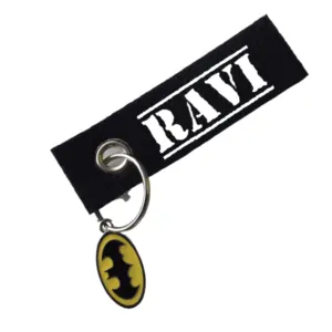 - sleutelhanger met bedel logo Batman en naar keuze met vilten hanger met naam